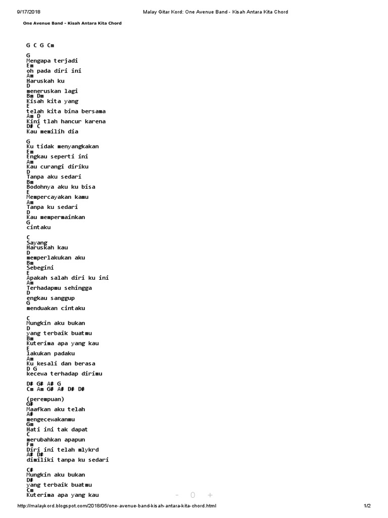 Malay Gitar Kord One Avenue Band Kisah Antara Kita Chord Pdf